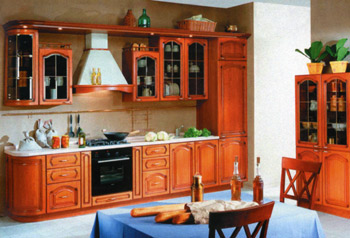 Кухня 164 Массив акации. Окрашена с устарением под каштан. Три слоя лака. Более 20 классических моделей фасадов из массива дерева производства Италии.