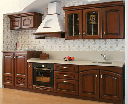 Кухня «Гварнерри» Массив акации, окрашен с эффектом состаренности. Три слоя лака. Более 20 классических моделей фасадов из массива дерева производства Италии.