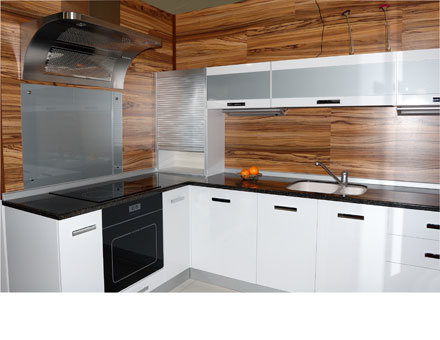 Фасады: МДФ Столешница: постформинг Скиф Мойка: каменная Granicom Верхний ряд: стекло в алюминиевом профиле Лаконичный дизайн для любителей четких линий и пропорций.