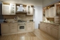 Аккуратный рамочный фасад органично дополняется стеклянными дверцами, а интересные скрытые полочки разнообразят оформление кухни. Все шкафы очень вместительные, ничто не будет загромождать столешницу. Посуда прячется в нишу над раковиной, кастрюли и сковородки в нижние шкафчики. Есть ящики для круп, полки для приправ и еще масса дополнительных отсеков.
