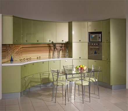 ЗОВ Белорусские кухни — сеть салонов / Каталог / Кухонные гарнитуры / Кухня «Виктория»(металлик светло-зелёный)