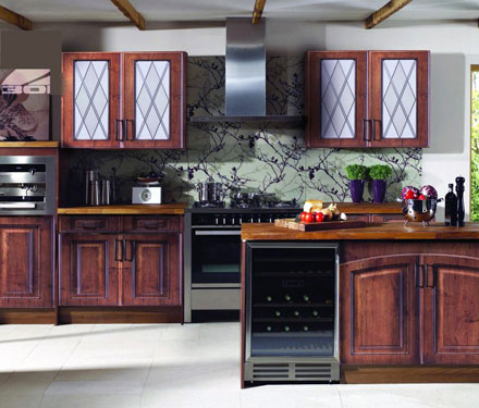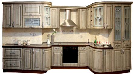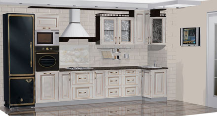 Эта кухня получила такое название не зря. Фрагменты фасада и декор повторяют элементы европейской архитектуры. Сочетание фасада «Лондон» с витражом, напоминающим тонкую решетку перенесет Вас в старинный замок далекой прохладной Англии. Эта кухня для истинных ценителей изящной старины. Идеальным дополнением для такой кухни станет старинный кран-лебедь, скульптуры животных или фарфоровых кукол. В фирменных салонах «Зов» Вы можете заказать кухню с фасадами «Лондон» в любой комплектации и и любом цветовом исполнении.