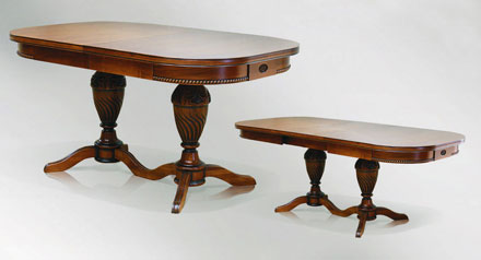 Стол раздвижной. Крышка стола — овал, шпонированная ДСП. Подстолья ("ноги") — массив ольхи и ясеня. Размеры: 150х90/200х90см Современную кухню сложно представить без функционального высокотехнологичного стола. У фабрики ЗОВ представлены, как столы из массива дерева, так и выполненные из постформинга – ДСП, покрытое под давлением слоем высококачественного, износостойкого пластика. Классические обеденные столы, серии раздвижных столов «Цезарь» и «Алиса», а также прочные и надежные столы, произведенные по технологии постформинга, станут идеальным дополнением любого современного кухонного интерьера.
